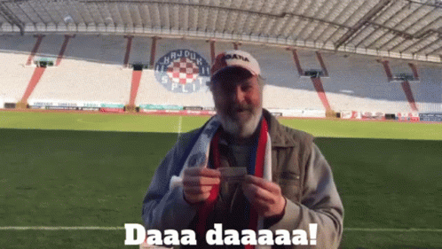 Enio Mestrovic, also known as Ričard, exclaims 'Daaa daaaaa!' at Hajduk Split's Poljud stadium.