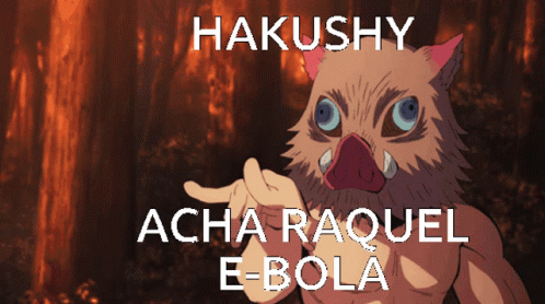Hakushy Fagundes meme featuring an anime character and the Portuguese text 'Acha Raquel E-bola'.