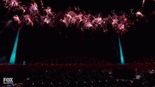 Spectacular fireworks light up the night sky during the Pepsi Super Bowl LIV Halftime Show.