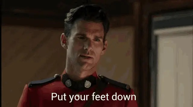 Elizabeth Thornton and Mountie Nathan Grant share a sweet moment, with Elizabeth reacting to a compliment.