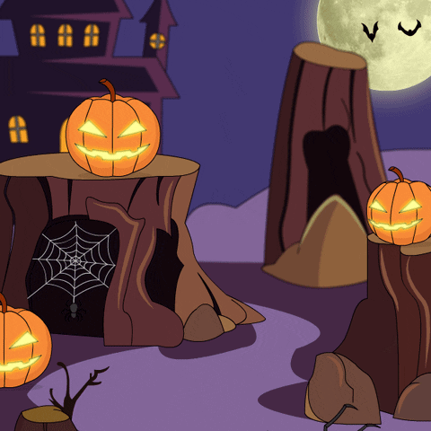 Pudgy Penguin hides among glowing jack-o-lanterns and spooky spiderwebs on a Halloween night.