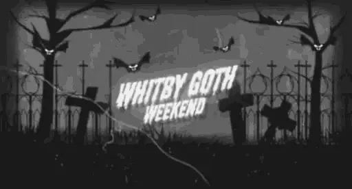 A festive graphic featuring two skulls, a bat, and 'HAPPY HALLOWEEN' text on a black background.