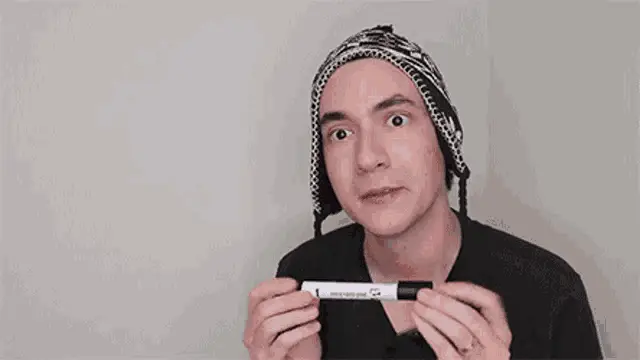 A minimalist animation of a black cat with white eyes peeking out, asking "Halloween yet?".