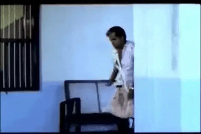 Louis CK makes a stern face and says 'Halts Maul!' into a microphone on stage.