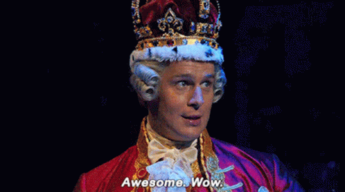 Jonathan Groff, portraying King George III in Hamilton, delivers a sarcastic "Awesome. Wow." line.