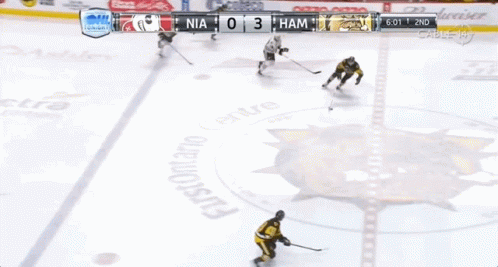 a hockey game is being played between the nia and ham teams
