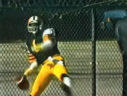 Hamilton Tiger Cats player Keith Baker in action, making a throwing motion on the football field.
