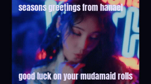 Hanael Rei sends seasons greetings and wishes good luck on Mudamaid rolls, featuring Jung Jinsoul.