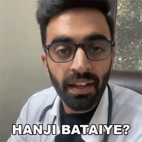 Rahul Dua, dressed as a doctor, asks 'Hanji Bataiye?' (Yes, tell me?), ready to assist.