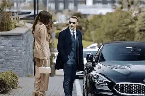 Hanker Edser by a luxury car, man opens door.