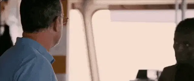 Tom Hanks in a suit waves as text changes from 'T. Hanks' to 'Thanks' in a clever wordplay.