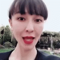 Woman makes funny, expressive faces for a Happy Birthday or Joyeux Anniversaire message.