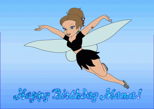 Tinkerbell flies through the air with a special 'Happy Birthday Mama' message, celebrating a birthday.