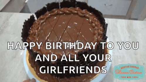 A delicious chocolate birthday cake with a special message: 'Happy Birthday to you and all your girlfriends'.