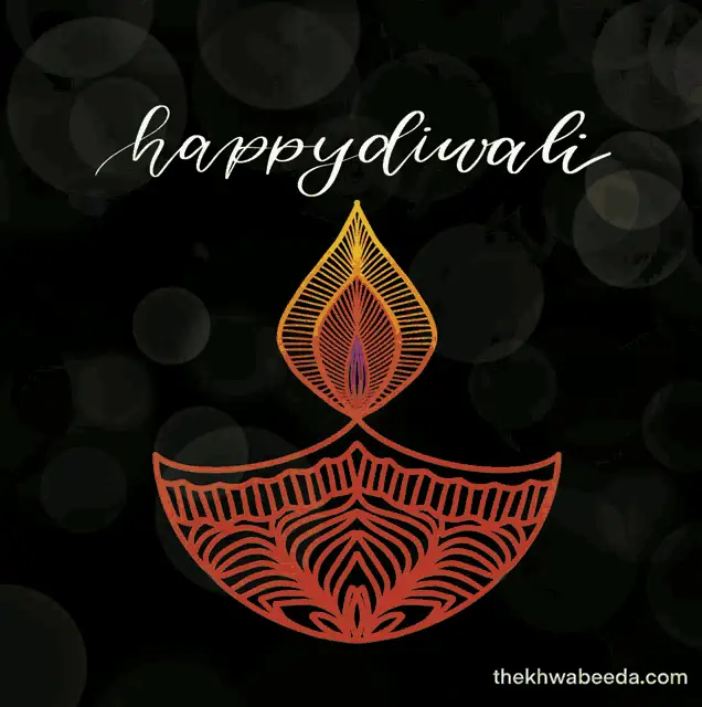 Colorful animated Diwali greeting card featuring Ganesh Ji, Lakshmi Ji, and traditional diyas and lotus flowers.