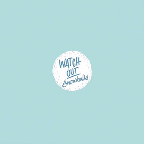 An animated graphic with the text "WATCH OUT Snowballs" on a light blue background with white snow-like dots.