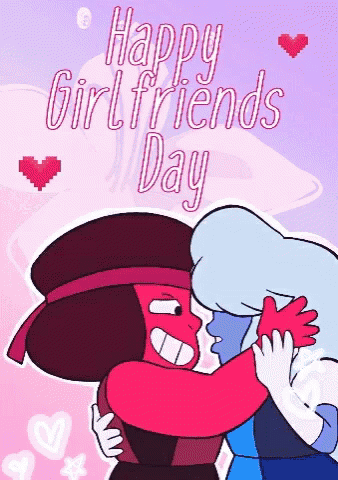 Ruby and Sapphire from Steven Universe celebrate Happy Girlfriends Day with a loving embrace.