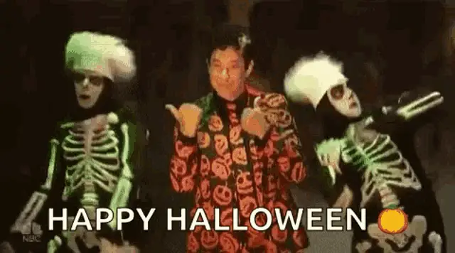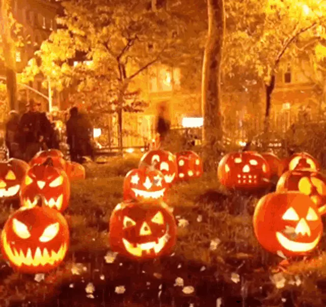 A festive Halloween greeting card featuring carved pumpkins and the text 'Happy Halloween'.