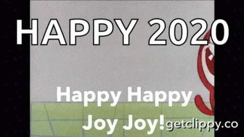 a happy new year greeting card with a picture of a christmas tree and the words `` happy 2020 happy happy joy joy ! ''