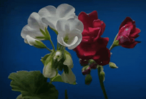 Beautiful white and red flowers bloom against a blue background, celebrating Happy Mothers Day.