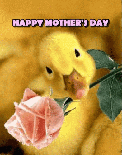 Adorable duckling holds a pink rose, wishing everyone a Happy Mother's Day.