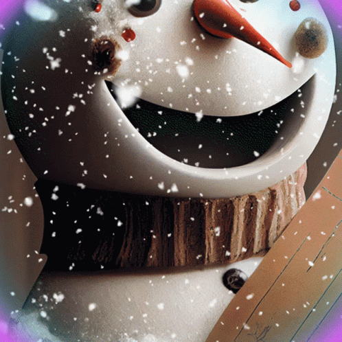 A cheerful snowman wishes Happy New Year 2024 amidst falling snow and glowing text.