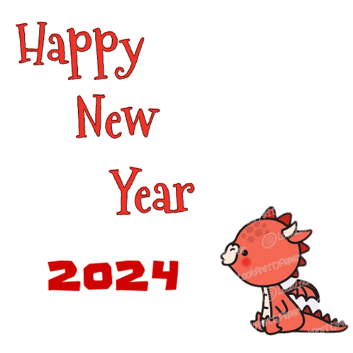 A cute red dragon breathes fire, celebrating Happy New Year 2024. Festive animation for the new year.