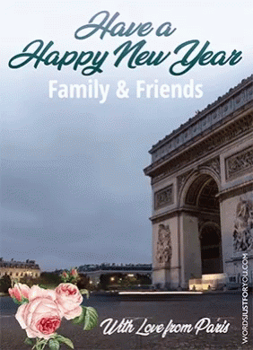 A beautiful Happy New Year greeting card featuring the Arc de Triomphe in Paris for family and friends.