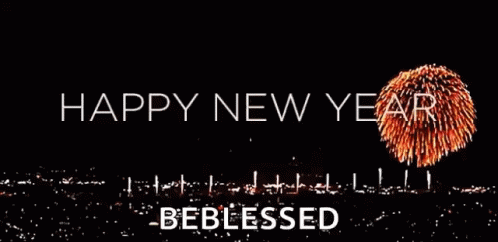 Spectacular fireworks light up the night sky with 'Happy New Year' and 'Be Blessed' messages.