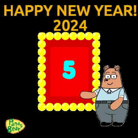 Pants Bear celebrates the New Year with a festive countdown to 2024, wishing everyone a Happy New Year!