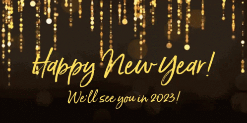 Celebrate the New Year with sparkling lights and a warm greeting: Happy New Year! We'll see you in 2023!