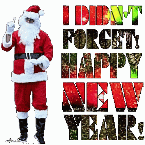 Santa Claus points and wishes 'Happy New Year!' with the accompanying message 'I Didn't Forget!'