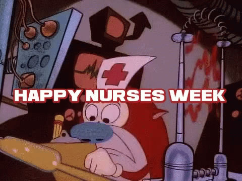 A cartoon nurse character nods in celebration of Happy Nurses Week and Nurses Day.