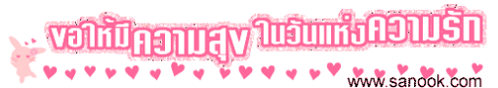 A festive greeting with 'Happy Valentine's Day' in English and Thai, adorned with sparkling pink hearts.