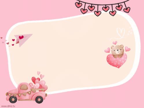 a happy valentine 's day greeting card with a pink truck and hearts