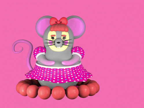 A cute cartoon mouse in a pink polka dot dress sends XOXO for Valentine's Day.