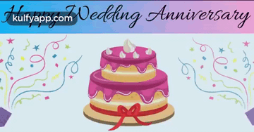 A festive animation celebrating a happy wedding anniversary with a decorated cake.