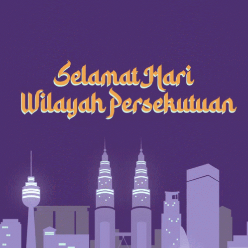 A vibrant animation celebrating Selamat Hari Wilayah Persekutuan (Federal Territory Day) in Malaysia, featuring Kuala Lumpur's skyline and fireworks.