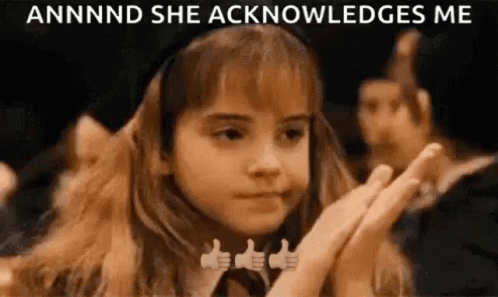 Hermione Granger from Harry Potter claps sarcastically with the caption 'ANNNND SHE ACKNOWLEDGES ME'.