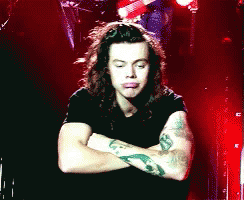 Harry Styles pouts, then rests his chin on his hand, looking thoughtful with his long hair.