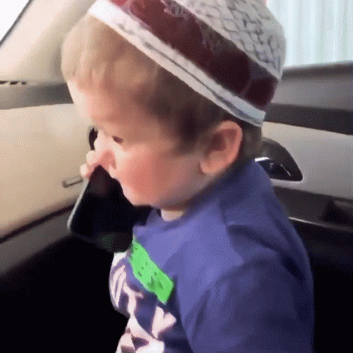 Hasbulla, a young boy, is seen talking on a cell phone while sitting in a car.
