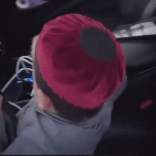 Hasbulla, wearing a red hat and a grey shirt, turns his head to look at the camera with a curious expression.
