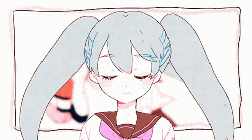 Hatsune Miku, the Vocaloid idol, featured in a cute anime animation with flowing pigtails and a school uniform.