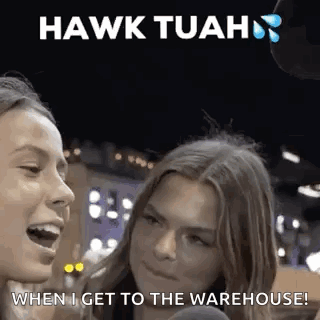 A woman goes viral with the 'Hawk Tuah' phrase, humorously describing her actions at a warehouse.