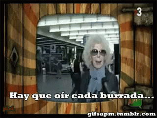 The Duchess of Alba, wearing sunglasses, reacts to something by saying 'Hay que oír cada burrada...' (One has to hear every nonsense...).