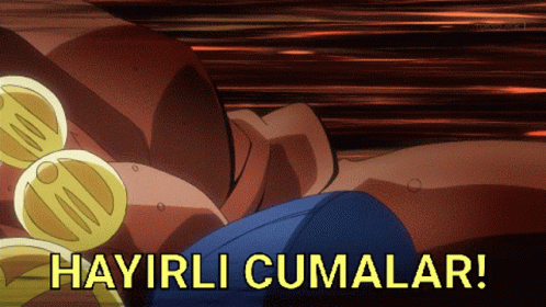 Mohammed Avdol from JoJo's Bizarre Adventure wishing 'Hayırlı Cumalar!' (Happy Fridays!) with intense poses.