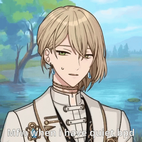 Hazeruti Rutile expresses a relatable moment for those with quiet BPD, featuring his signature blonde hair and green eyes.