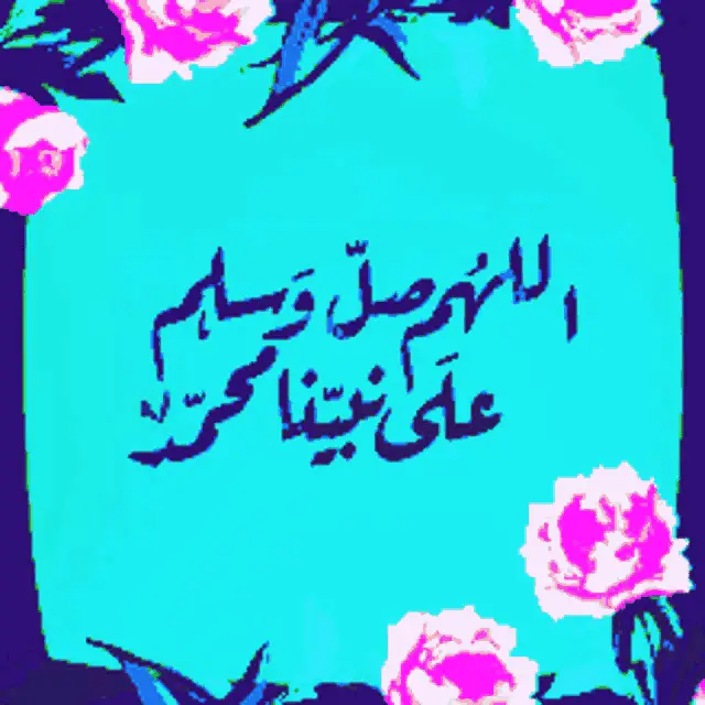 A beautiful animated prayer for Prophet Muhammad, featuring Arabic calligraphy and blooming flowers on a yellow background.