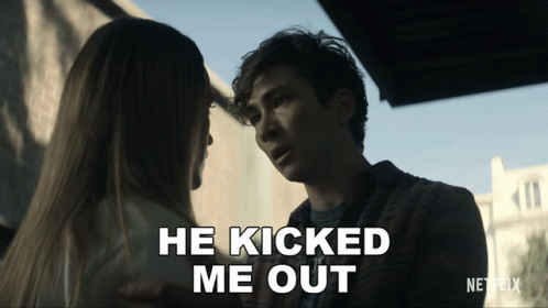 Dylan Arnold as Theo and a woman in a tense moment, with the on-screen text 'He Kicked Me Out'.
