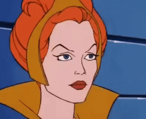 Teela from He-Man reacts with a look of fabulous relief, scratching her forehead in a classic cartoon moment.